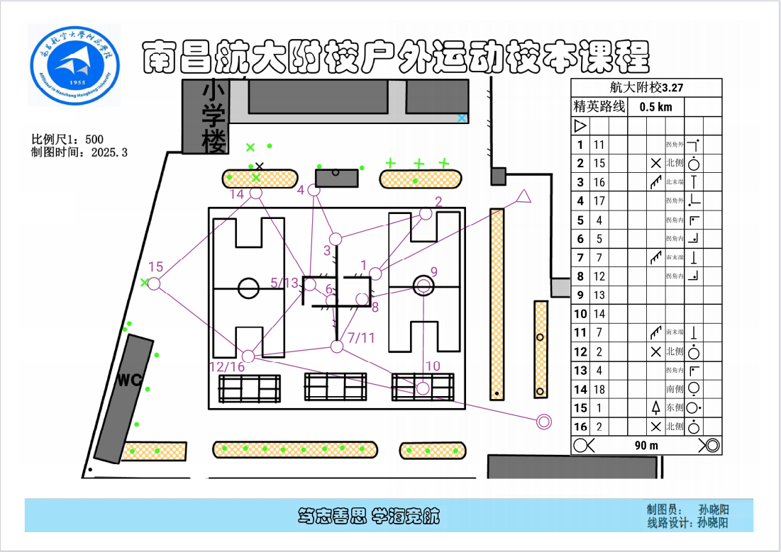 校本课程以习近平新时代中国特色社会主义思想为指导,旨在增强学生体质,帮助他们掌握户外技能,并培养坚韧意志与团队协作精神;课程结合定向越野比赛要求,融合地理学科知识,将图例、检查点的说明符号学习与竞技体育结合起来,既锻炼运动能力又培养思维能力;本课程还充分利用学校资源,以“大班级”为训练单元,实现跨班级授课新模式,充分发挥了教师专业优势。