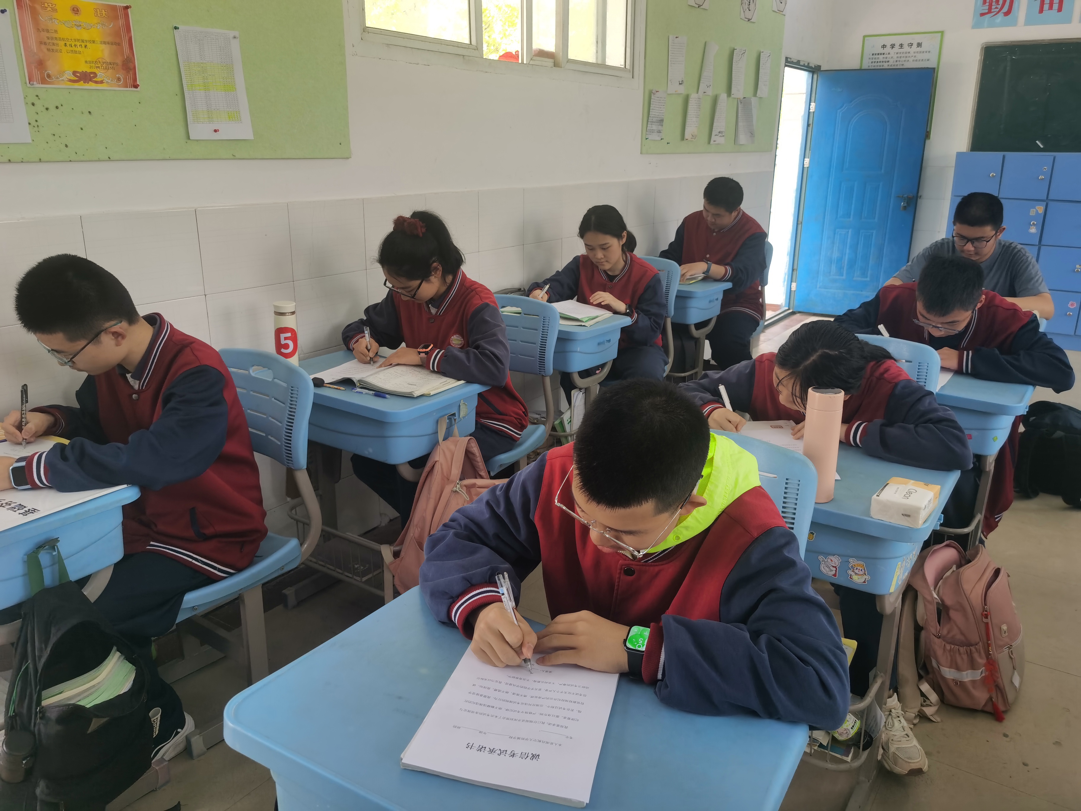 多举措确保诚信考试落实。学校精心布置考场,黑板上书写“诚信考试,从我做起” 的警示标语,设立校领导、考务和流动纪检巡视三级督查制度,专门设立了诚信考场,不安排监考人员,开启网络视频监控,全方位保障考试顺利进行。