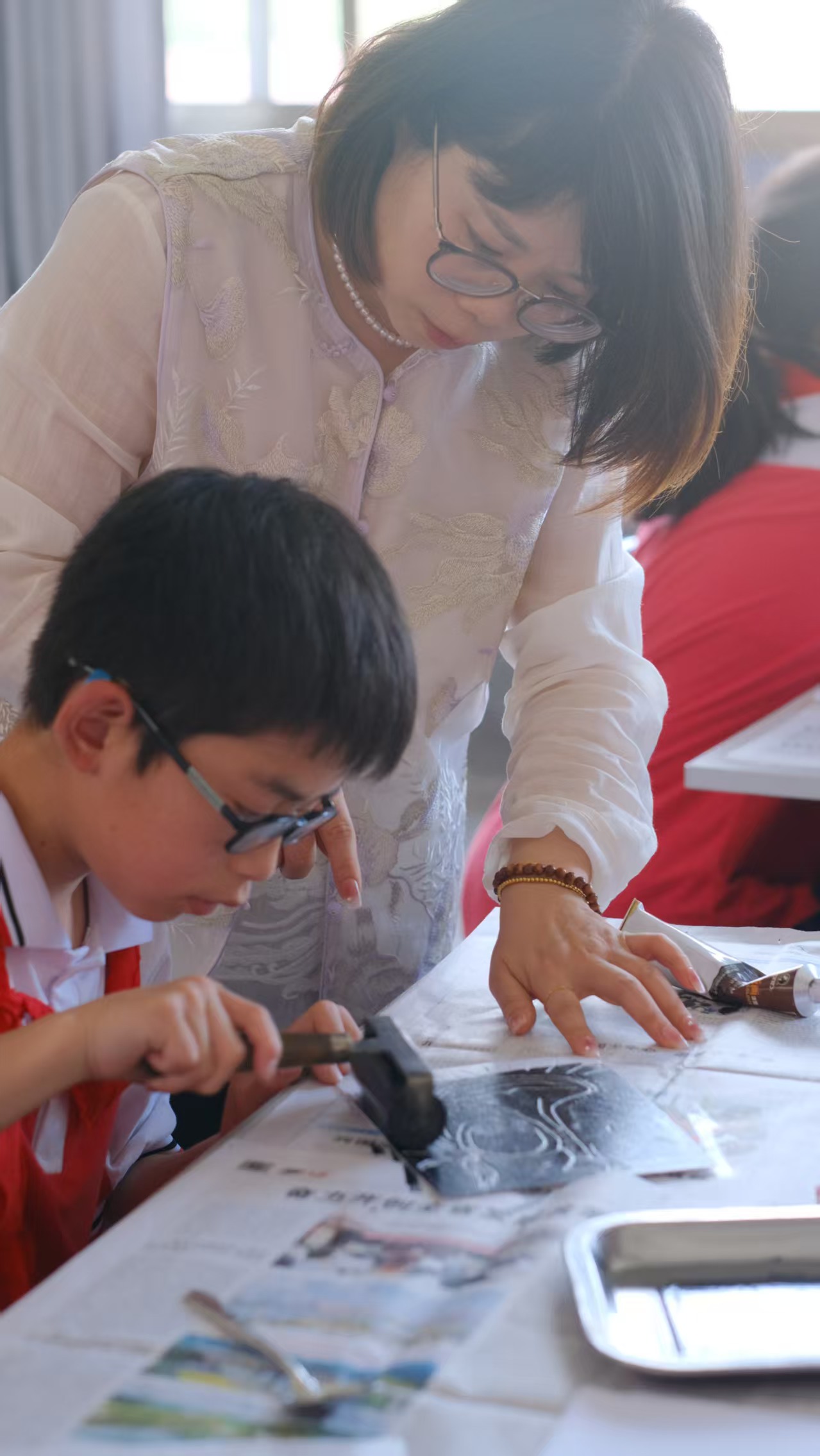 在示范课环节,孙李晶、熊芳老师以学科交叉融合的方式,呈现了五年级美术版画单元课《红色家书》,将文字化作刀下生动的符号,倾注着对革命先辈的敬意;两位老师通过红色版画单元课引导学生以刀为笔,刻印信仰的温度,以心传薪,点亮乡村的星光。李霞老师讲授四年级信息课《数据管理与编码》,以数据管理精准编码红色记忆,传承不朽红色文化;方翔老师执教三年级音乐课《祖国祖国我们爱你》,以歌声传递爱国情;刘璐老师带来六年级语文课《赵一曼的红色家书》,将诵读家书融入课堂,感受信仰力量。工作室成员通过多元课堂,点燃红色教育星火。